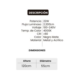 LAMP TECHO LED MATT BLACK 22W LI-1727 BK