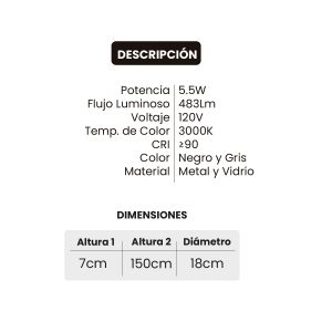 LAMPARA LED COLGANTE 5.5W 483LM 3000K 1891-BK